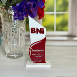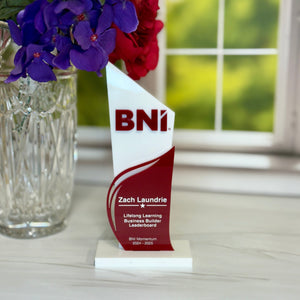 Crafted with layered acrylic and bold graphics, each award can be customized with your company logo, recipient’s name, award title, and year. Whether it’s for employee recognition, sales performance, leadership, or chapter awards, this professional piece ensures your celebration feels polished and meaningful.